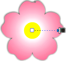 點選花瓣使其變成旋轉(zhuǎn)狀態(tài),將旋轉(zhuǎn)的軸心移至花瓣的下方,并離開花瓣一小段距離。