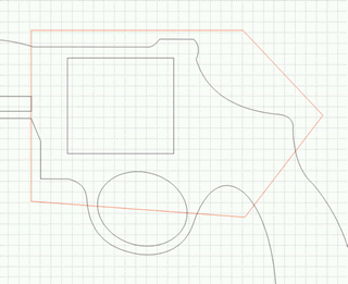 確定剛才繪制的小圖形處于被選擇狀態,按下shaping(造型)面板上的trim操作按鈕,這時鼠標指針會發生變化,點擊手槍的外輪廓的邊緣線將圖形修剪為鏤空狀態(如圖8)。