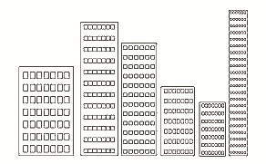 用矩形工具畫出如圖大小不一的幾個方塊,選中它們,通過arrange -> align & distribute調出對齊分布對話框,選中botton(底部對齊),確認之后,右鍵單擊這些對象的中心控制點,在彈出菜單里面選擇group(群組),目的是讓它們總在一起。
