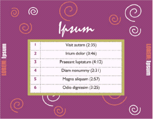 10.用向下的方向鍵,把曲目列表向下輕移數(shù)下,放置到稍低于頁(yè)面中心的位置。(圖position the track-listing)