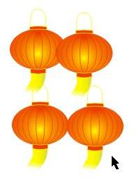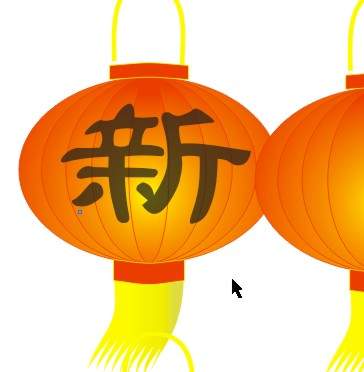 9.用ctrl+a選種全部的物體,再用ctrl+g組合一下。燈籠就算做好了。用“+”復制3個,我們可以在上面帖上“新春快樂”幾個字。(11)
