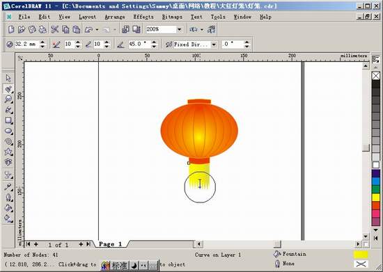 1.用ellipse tool畫一個燈籠形狀的橢圓,用右鍵點擊red色塊,填充橢圓的線框。(1)
