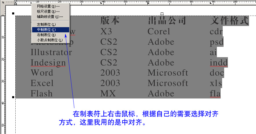 3、一般來說,cd的段落文本會默認出現很多制表符,是左齊的,可以根據自己的需要刪除沒用的,需要幾個保留幾個。