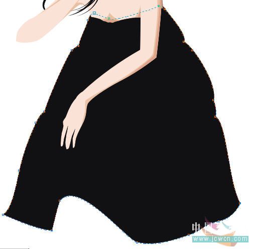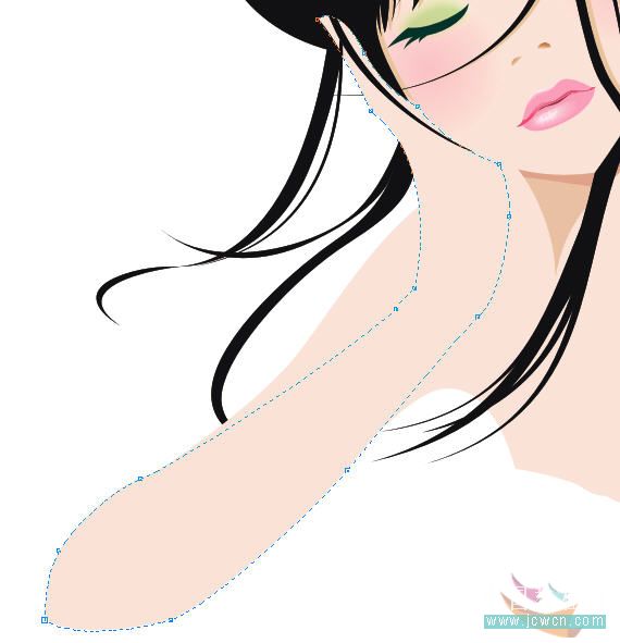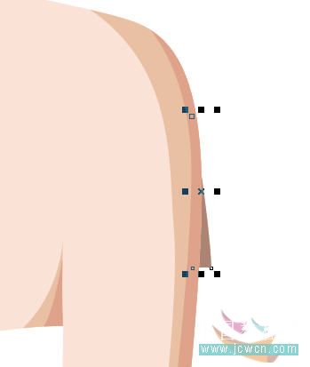 用曲線工具繪制人物手臂,用上面的方法將顏色及輪廓復制給它,如下圖所示: