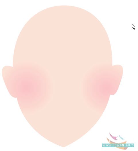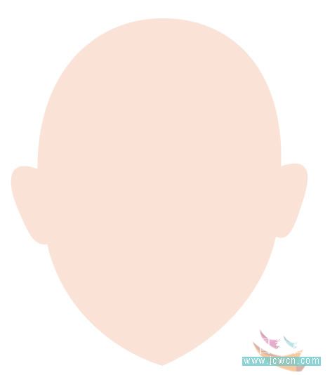 1、用曲線類工具繪制出人物頭部輪廓,填充合適的膚色(c0、m9、y9、k0)并去除輪廓,如下圖所示: