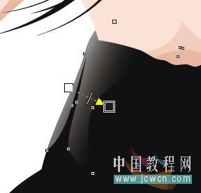 由于我們前面畫的衣服是黑色的,沒法再細化暗部了,因此在這里,我們直接勾出衣服的受光面就行了