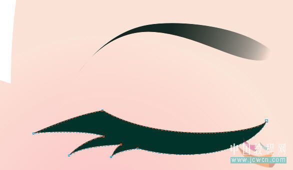 16、利用修整中的相交命令,取得腿部的陰影部分,分別填充暗一些的扶色,如c3、m25、y25等。填充后的效果如下圖所示: