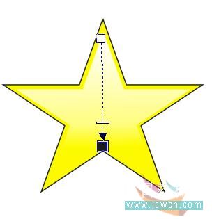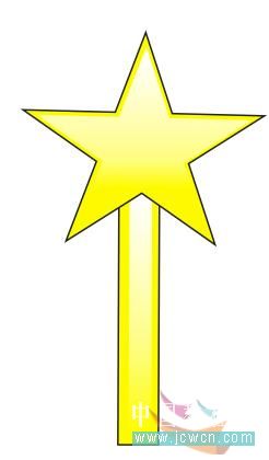 18、下面繪制小精靈手中的魔棒。選擇“星形工具”,在屬性欄中設置星形邊數:5;尖角為20,然后繪制一個星形,并設置其填充顏色為黃色(y:100),輪廓為2 mm粗細的黑色,如圖18所示: