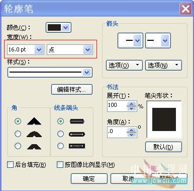 3、接下來為圓形填充顏色并設置其輪廓粗細。保持圓形的選中狀態,在工具箱中選擇“輪廓工具”,在隨后彈出的工具組中選擇“16點輪廓(中粗)”,效果如圖3所示: