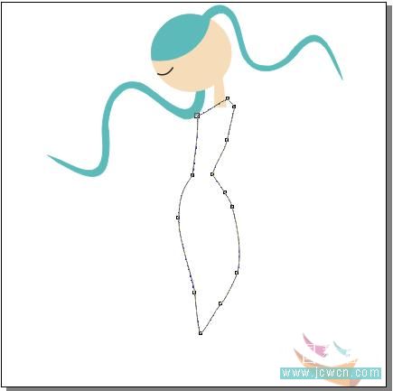 6、用“鋼筆工具”繪制如圖7a所示的路徑作為女孩的裙子。