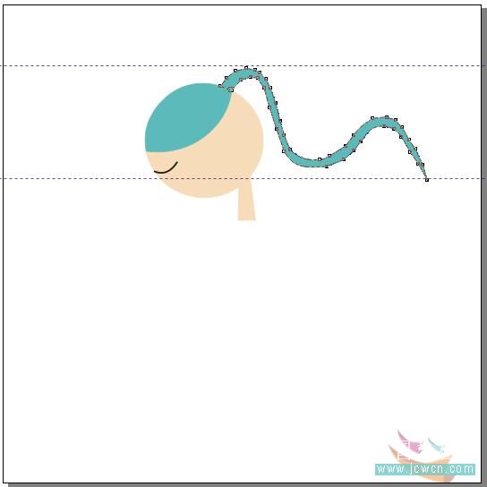 5、將頭發路徑復制一份(按小鍵盤上的“+”號鍵進行復制),然后單擊屬性欄中的“鏡像”按鈕,將頭發路徑鏡像翻轉,然后調整其大小,放置在如圖6所示的位置。