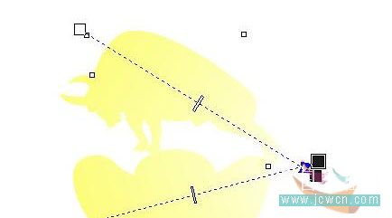 4、再點交互式變形屬性欄上的添加新的變形 ,再將鼠標移到已變形的8邊形的中心,按住左鍵,往左上角拖(不要旋轉),看到有鳳凰模樣的雛形就放開。