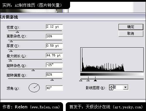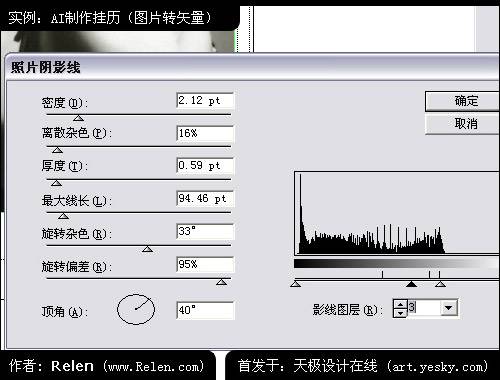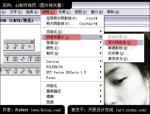把照片導入到illustrator 10中。亦然是選擇菜單中的 濾鏡 > 鋼筆和墨水 > 照片陰影線 調入設置面板。