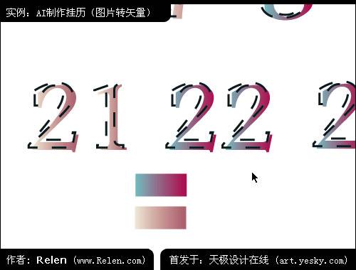 數字也使用了同樣的方法,注意調整勾邊的厚度。數字圖形小,勾邊厚度也要小一些。周“六日”的數字漸變與其他漸變色彩做出不同來,細節也要稍做留意。