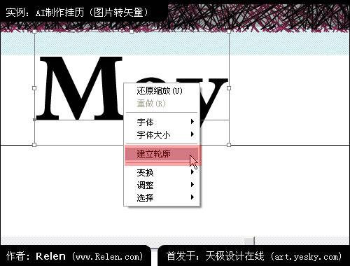 鍵入may字符。因為想給他填充漸變色彩,所以必須把字符轉為路徑。