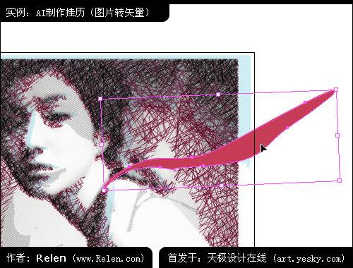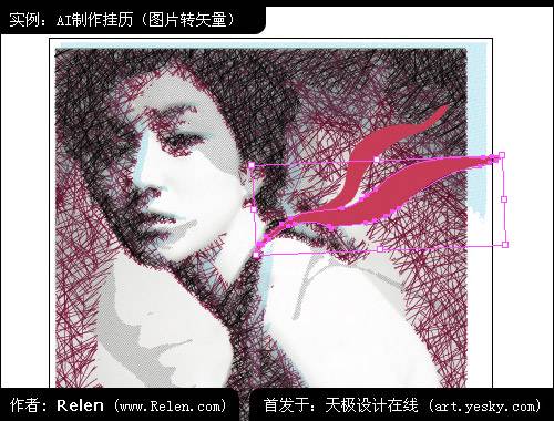 觀察這張畫面,因全部是使用照片陰影線處理的,細節比較統一,使畫面缺少跳躍的變化。relen決定加上一條絲巾,為畫面增加些許飄揚的氣氛。