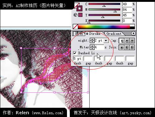 因勾邊過于強烈,把勾邊變為虛線勾邊,減弱它的視覺強度。