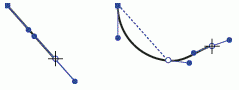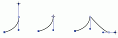 在放置連接點時進行拖曳,以延伸控制點。本控制點會影響下一路徑區段的曲線。