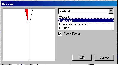選擇一個對象,在xtra tools面板中雙擊mirror(鏡射)工具,打開mirror面板(如圖);在其鏡射類型下拉菜單中選擇horiaomtal(水平)項,按ok確定;在畫面中拖動鼠標以移動反射軸,直到鏡射圖像位置適當,松開鼠標,創建一個對象的水平鏡像。