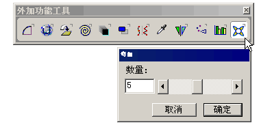 打開外加功能工具面板,雙擊面板中的 彎曲按鈕 ,如下圖所示。在彎曲工具面板的屬性對話窗口中設(shè)置彎曲的數(shù)量值為5,點(diǎn)擊確定按鈕。