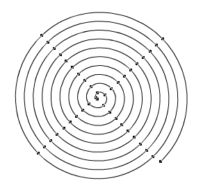 在文檔中按下鼠標(biāo)然后拖動(dòng),直到繪制出如下圖所示的螺旋對象。使用上面的螺旋設(shè)置屬性,這個(gè)螺旋形狀對象的圈數(shù)是固定的,鼠標(biāo)拖動(dòng)距離的不同改變的僅僅只是螺紋之間的距離以及大小。