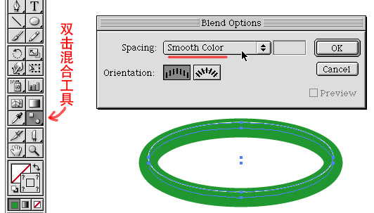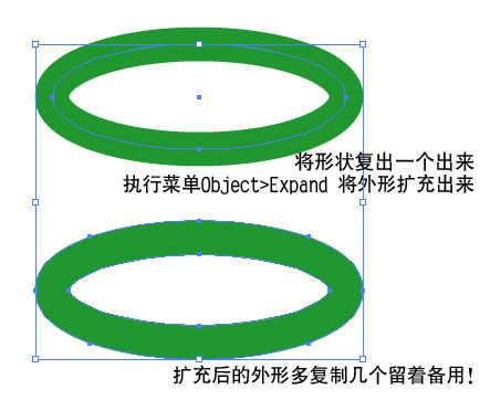 最終效果圖如下:1擴充后的形狀主要用來做陰影等,原來沒擴充的依然要留著2 .橢圓為未擴充為形狀的橢圓3 .選中兩個橢圓,進行混合4