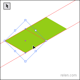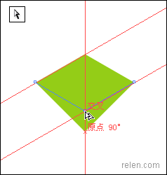 【a】使用直接選取工具,點中第二個菱形左、下兩點,豎直拖動到與參考線相交的位置。形成新的菱形,圖3 圖4