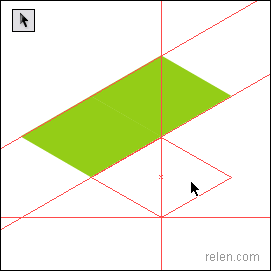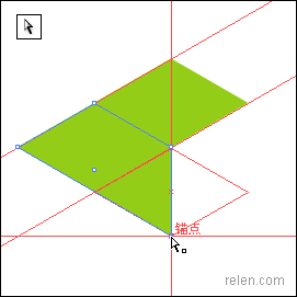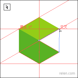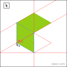 最后挪動第三個菱形的上、左兩點,利用參考線挪動到指等定位置。更改第三個菱形的顏色。六面體就制作完成了。我們可以轉換到輪廓模式上觀察這些點是否交叉密合,更進一步做到精確圖形。