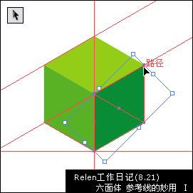 在國外的站點上經常可以看到老外們運用六面體制作的flash或壁紙,六面體制作起來十分簡單,但是想制作出比較規矩的六面體還需要一點小技巧。下面就隨著relen的工作流程看看illustrator中如何運用參考線制作嚴謹的六面體。
