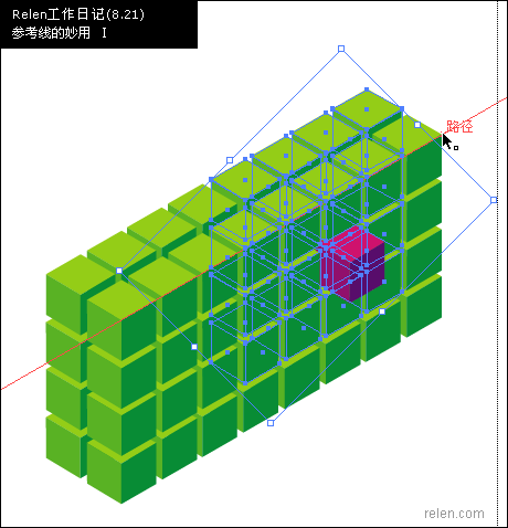 想要生成如卷首的六面體組合,依舊是利用設置的參考線,以及智能參考線。怎樣?看過之后,你可以把他們直接導入flash或photoshop里,加工完善,感覺不錯吧:)