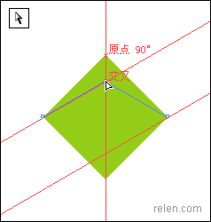 把之前生成的正方形圖形【shift】旋轉45度后形成菱形,同時挪動我們制作的參考線,把它們分別放在正菱形左右頂點上。【ctrl +alt + ;】鎖定它們。