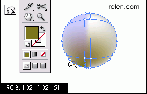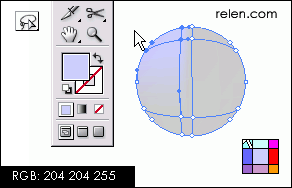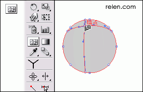 按【v】使用選取工具(黑箭頭),點中我們繪制好的圓形,然后【q】使用直接選取鎖套工具,選擇如下圖的點,并且改變顏色。