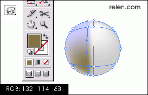 按【u】選擇漸變網格工具,再正圓圖形上分割三個點,如下圖位置。