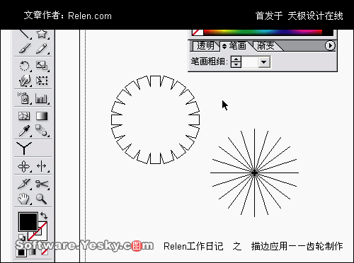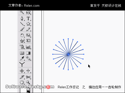 (也就是說,原來的放射線條轉換為外框路徑)這時的星形就不見了,完全變了鋸齒。