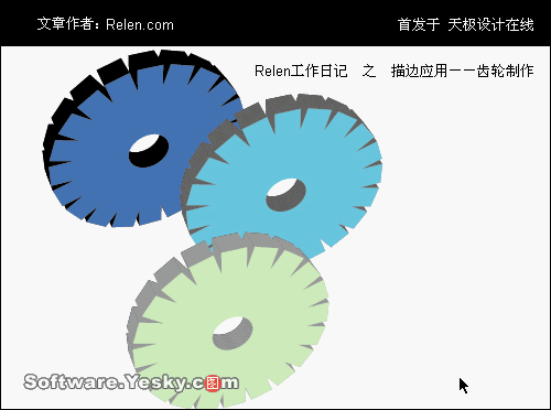 如何?不難吧。主要是星形工具的應用,描邊工具制作出齒輪,齒輪厚度是采用混合工具。把握住這幾點,也許你會制作出更多圖形。