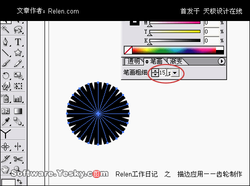 給這個星形描邊,在筆畫面板中填寫15pt。