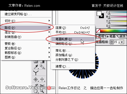 再次選擇這個齒輪,在菜單中選擇 對象>路徑>筆畫輪廓