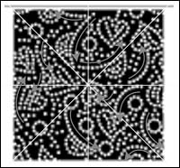注:葉子是這幅圖案的主體,有的葉子向上,有的葉子向下,形成一種旋轉生長的運動的旋律,因此,這幅圖案的生動之處,就在于它的運動旋律,將春暖花開生機盎然的自然景色演繹得非常準確。這幅圖案不是對稱型的。圖案中葉子多的上半區,花朵少,葉子少的下半區,花朵多,因此,整個圖案呈現出均衡型。