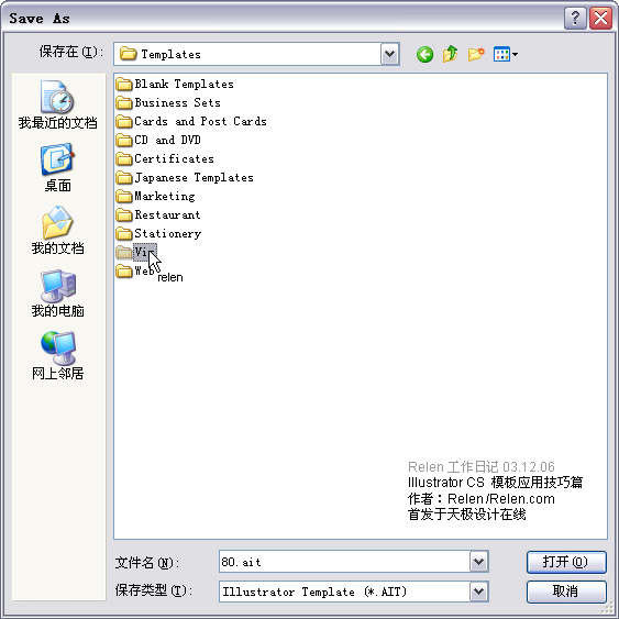 除了使用ai cs自帶模板外,我們還可以把一些特殊或常用的格式保存為ai cs模板,方便以后使用。