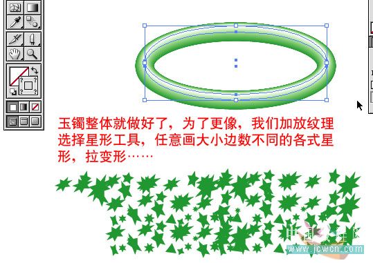 玉鐲整體就做好了,為了更像,我們加放紋理選擇星形工具,任意畫大小邊數不同的各式星形,拉變形