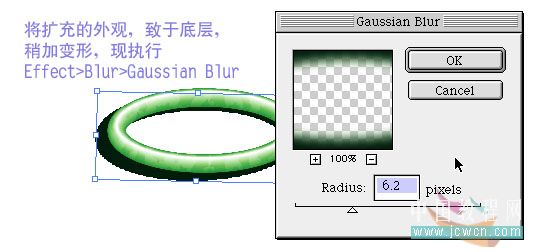將擴充的外觀,置于底層,稍加變形,現執行effect(濾鏡)——blur(模糊)——gaussian blur(高斯模糊)