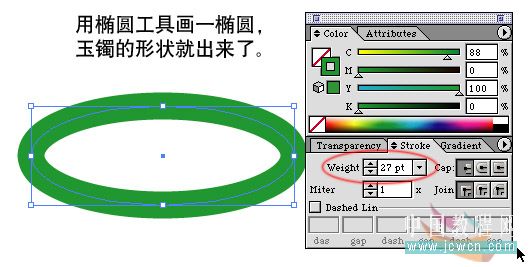 用橢圓工具畫一橢圓,玉鐲的形狀就出來了
