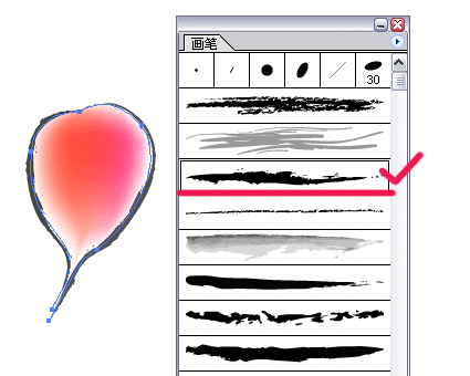 第十一步:選擇外形邊框,同樣切割為兩條路徑,然后施加畫筆效果。然后編輯成組,一片葉子完成。