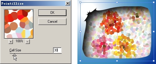 單擊filter(濾鏡)菜單pixelate(像素化)濾鏡組中的pointillize(點畫法)濾鏡命令,即可彈出pointillize(點畫法)對話框。