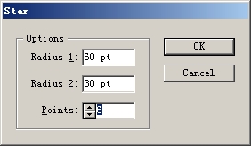 在工具箱中選擇 star tool(星形工具),在需要繪制星形的位置單擊一下,即可彈出star(星形)對話框中指定星形的radius(尺寸)和星形的point(頂角)數量,如(圖5)所示。