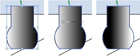 選擇工具箱中的 gradient tool(漸變工具),在花瓶的右側單擊并拖動出一條控制線,來調整起始顏色到終止顏色漸變的方向和范圍,如(圖22)所示。