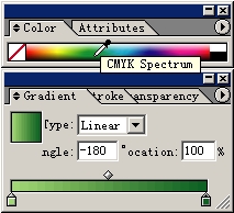 在顏色選項面板的調色條中選擇漸變起始色。同樣的方法設置漸變終止色,如(圖24)所示。圖24 設置漸變色選擇 gradient tool(漸變工具),調整漸變色方向和范圍,如(圖25)所示。圖25 修改后的桌面漸變顏色