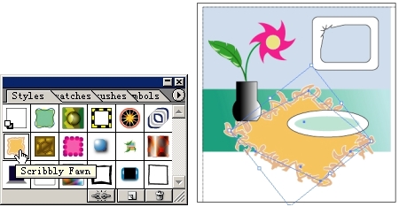 將選定的樣式scribbly fawn拖動到桌布圖形中,即可將選定的圖案樣式應用到圖形對象中,如(圖29)所示。