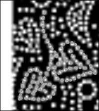 2. 建立一個(gè)新圖層,命名為“背景圖”。從工具箱中選擇“rectangle”(矩形)工具,按下“shift”鍵畫一個(gè)145×145的正方形框,邊框顏色設(shè)為“紅色”,將其正好套在圖層“原圖”的輪廓上。