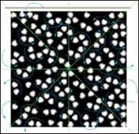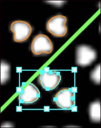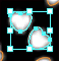 8. 整幅圖案的大部分結構是由三個小桃心的圖案組成,依上述方法復制出多個圖案,當鼠標指針變為旋轉指針時,旋轉圖形,放在素材圖中相應的位置上,將三個桃心一組的圖案全部繪畫完成。